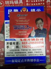 飛虎開鎖有限公司天津分公司全年24小時上門服務,主要從事開鎖、修鎖、換鎖芯、安裝鎖具、貓眼、對講門、改門把手,承包鎖具工程的改造,開修各種保險 柜、文件柜、異型鎖、磁力鎖、電子密碼箱鎖、防盜門、各種高、中、低檔汽車鎖,配精密高端鑰匙、電子芯片鑰匙及國外異形鑰匙等。并經銷各種高中檔防盜門、 木門、室內門、指紋門、各式各樣鎖芯、各種各樣的鎖具及開鎖工具。